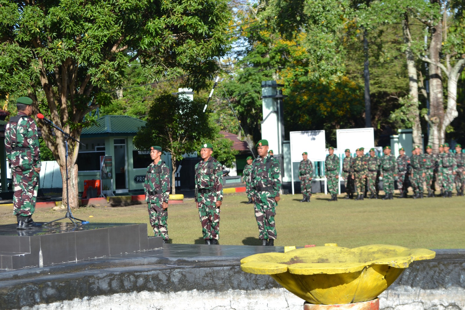 KODIM 1405/PAREPARE – Komando Distrik Militer (Kodim) 1405/Parepare menggelar Upacara Bendera yang secara rutinitas dilaksanakan setiap hari Senin untuk mewujudkan rasa hormat kepada Bendera Merah Putih serta rasa cinta kepada Bangsa dan Negara. Dalam Upacara Bendera tersebut yang bertindak sebagai Inspektur Upacara (Irup) Pasiter Kapten Inf Kaharuddin.