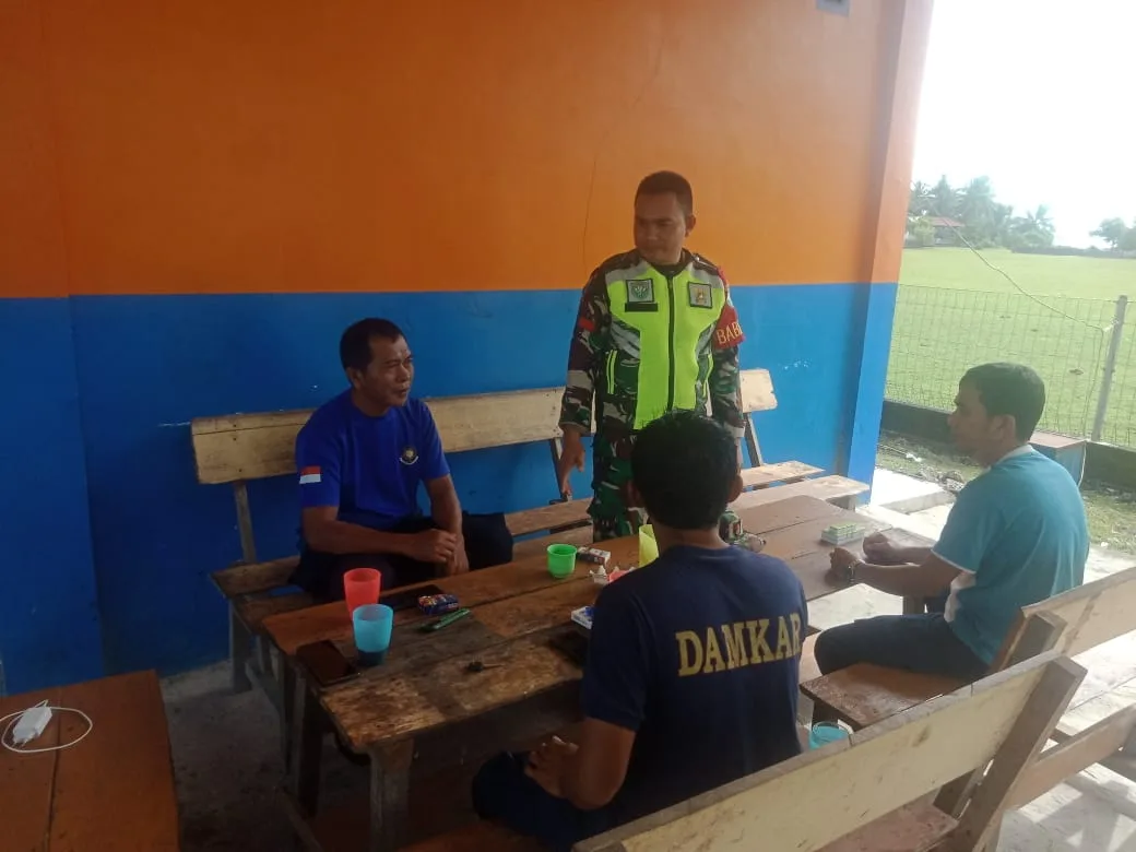 Simeulue – Praka Darmansyah Babinsa Koramil 03/Teupah Selatan, Kodim 0115/Sml, Korem 012/Tu, melaksanakan melaksanakan Komsos (Komunikasi Sosial) bersama anggota pemadam kebakaran guna mempererat silaturahmi agar tetap selalu terjaga dengan baik, kegiatan komsos tersebut dilakukan di pos Damkar wilayah Kecamatan Teupah Selatan, Kabupaten Simeulue. Jumat (03/04/2026).