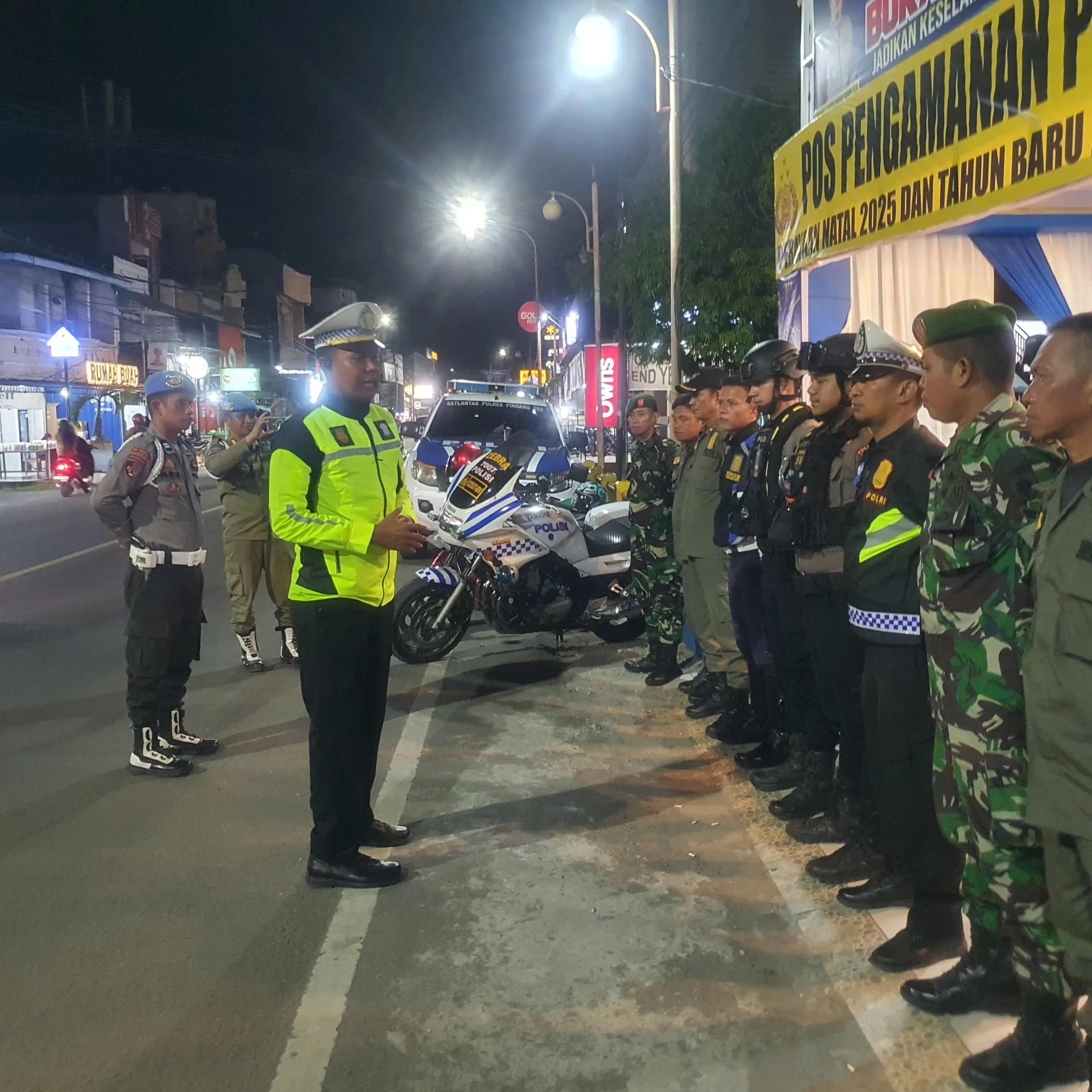Pinrang_ Dalam rangka menjaga situasi keamanan dan ketertiban masyarakat selama perayaan Natal dan Tahun Baru (Nataru), sinergitas TNI–Polri bersama stakeholder terkait terus ditingkatkan melalui pengamanan di Pos Pengamanan (Pospam) Nataru yang tersebar di wilayah Kabupaten Pinrang, Jum’at (26/12/2025).