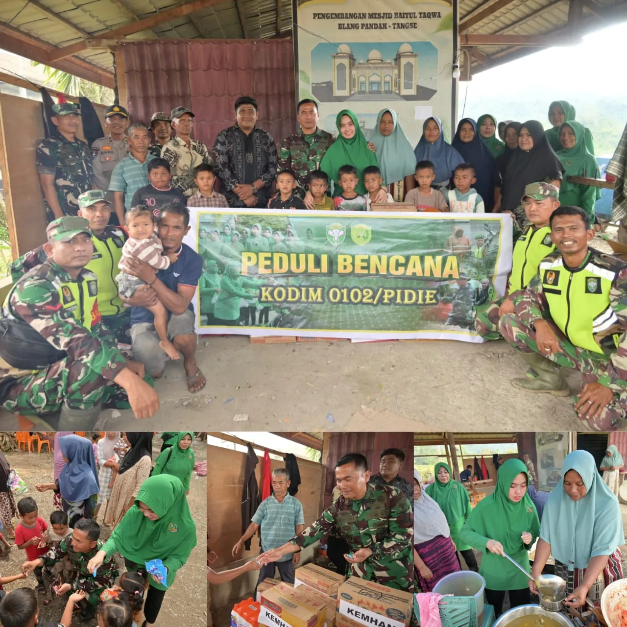 Tidak hanya menyalurkan bantuan logistik, Ketua Persit KCK Cabang XIX Dim 0102/Pidie bersama anggota Persit Ranting 17 Tangse juga turut ambil bagian membantu memasak di posko pengungsian. Kegiatan ini dilakukan sebagai bentuk kepedulian, empati, serta dukungan moril kepada para pengungsi agar tetap mendapatkan asupan makanan yang layak di tengah kondisi sulit.