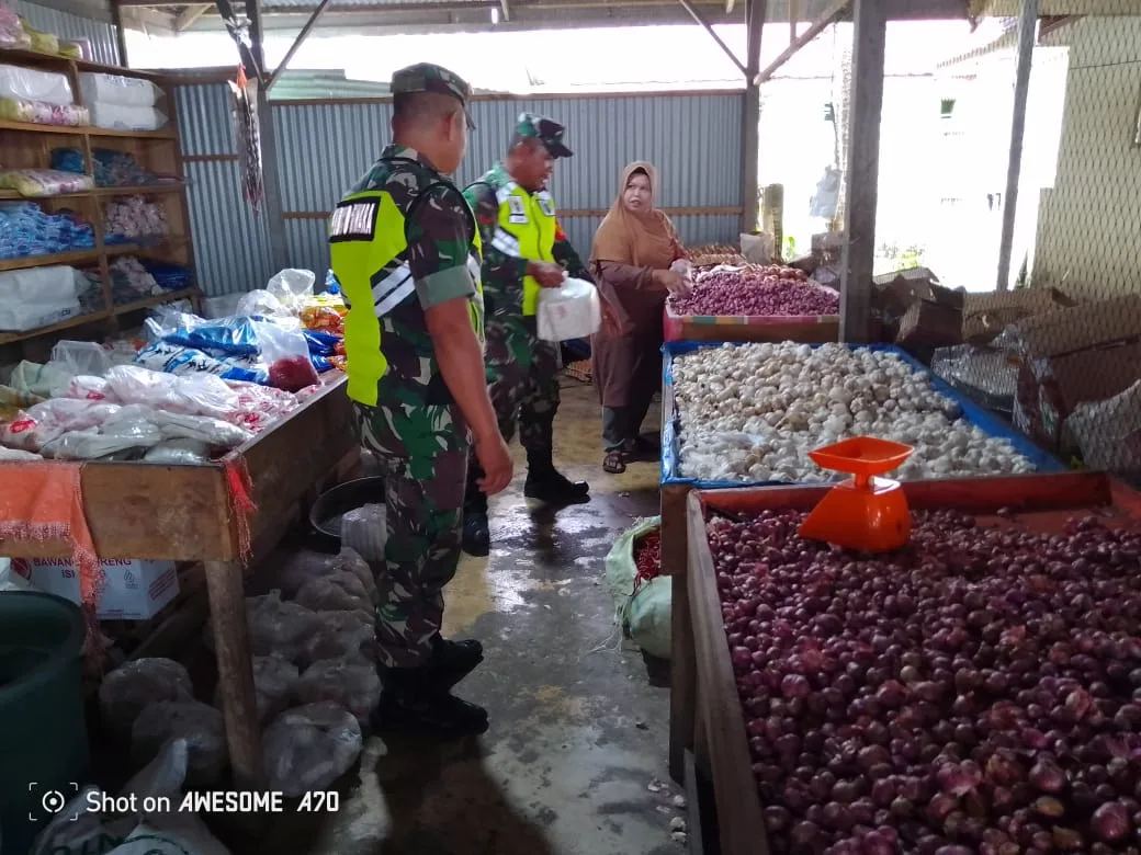 Dalam rangka pengamatan harga tersebut Babinsa Ramil 04/Beutong Kodim 0116/Nagan Raya. Personil Koramil tersebut menyampai kan ajakan kepada masyarakat (penjual)menjaga keamanan wilayah lapak jualan nya.dan selalu menjaga kebersihan lingkungan bersama.pungkas nya.